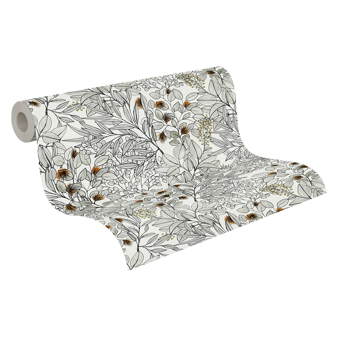 Vliestapete Blätter-Muster weiß grau orange A.S. Création Geo Nordic 37534-3 | 375343
