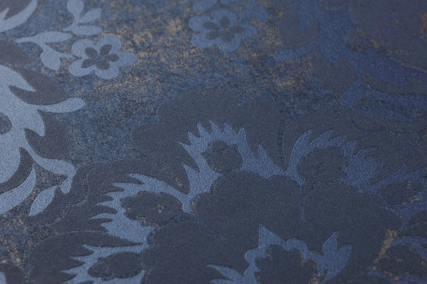 Besonders kostbar wirkt das barocke Blumenmuster dieser Vliestapete durch die Kombination von drei verschiedenen Blautönen. Graublau und Perlblau in Verbindung mit dem azurblauen Hintergrund schaffen eine entspannende Atmosphäre. Die großen, kunstvoll arrangierten und ineinander verschlungenen Blüten und Blätter machen die Tapete zu einem echten Kunstwerk.