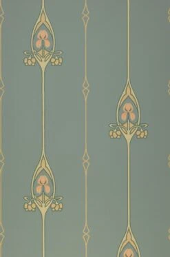 Klassik ist in! Das betörende Jugendstilmuster, das graphische und florale Elemente gekonnt vereint, bevorzugt Beige, Elfenbein, Zartrosa und Kieferngrün, um sich kontrastreich vom minttürkisen Hintergrund abzuheben. Eleganz mit dem gewissen Etwas umhüllt den Raum, welche durch die Leimdruckoptik der Papiertapete zusätzlich unterstrichen wird.