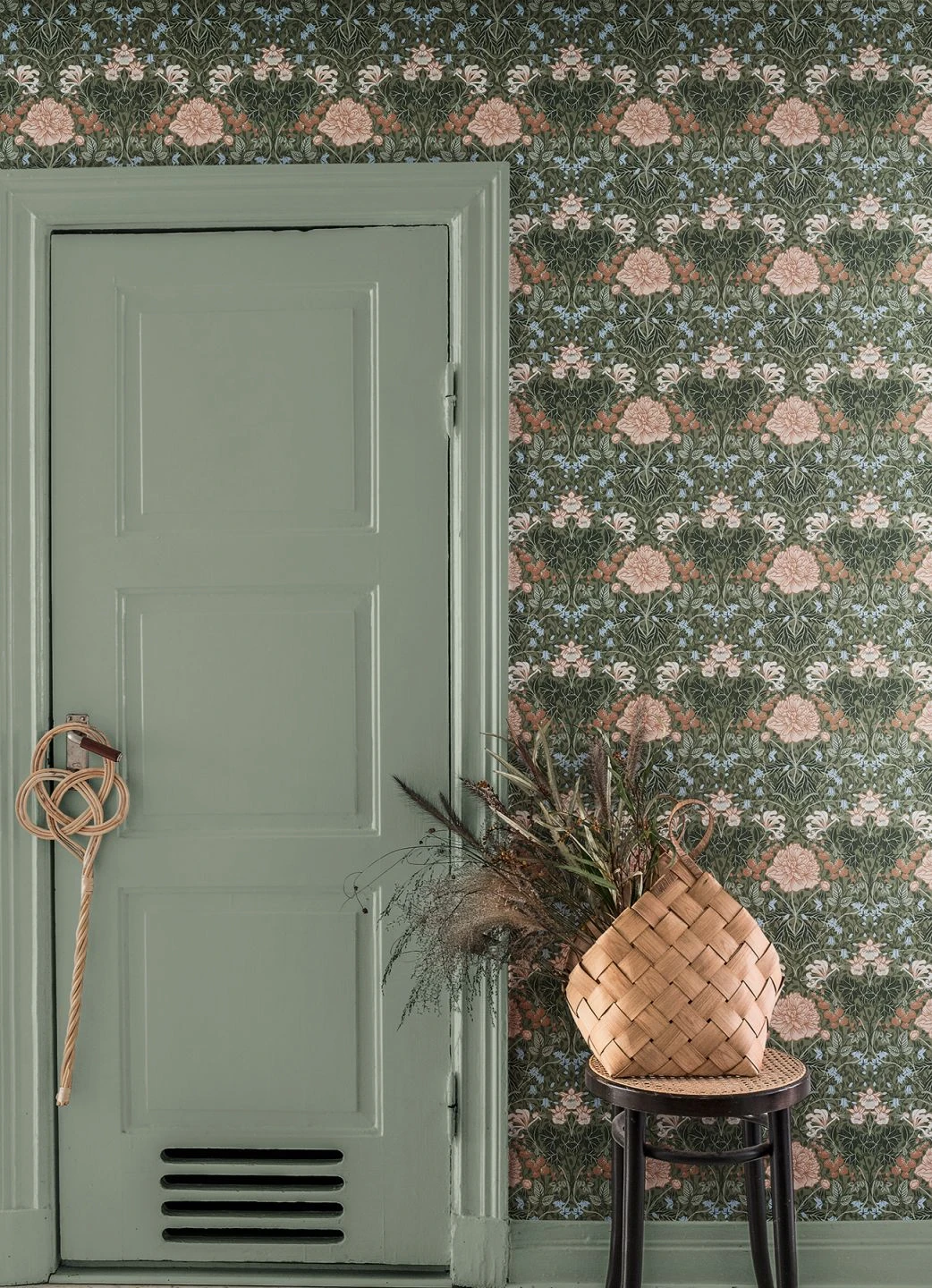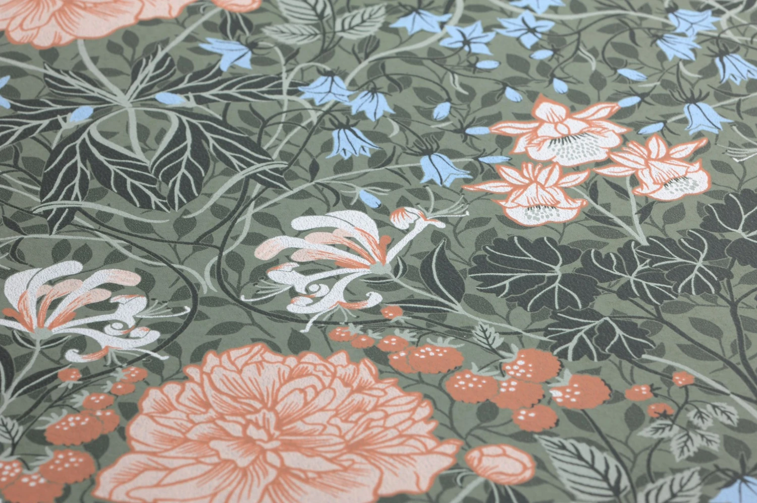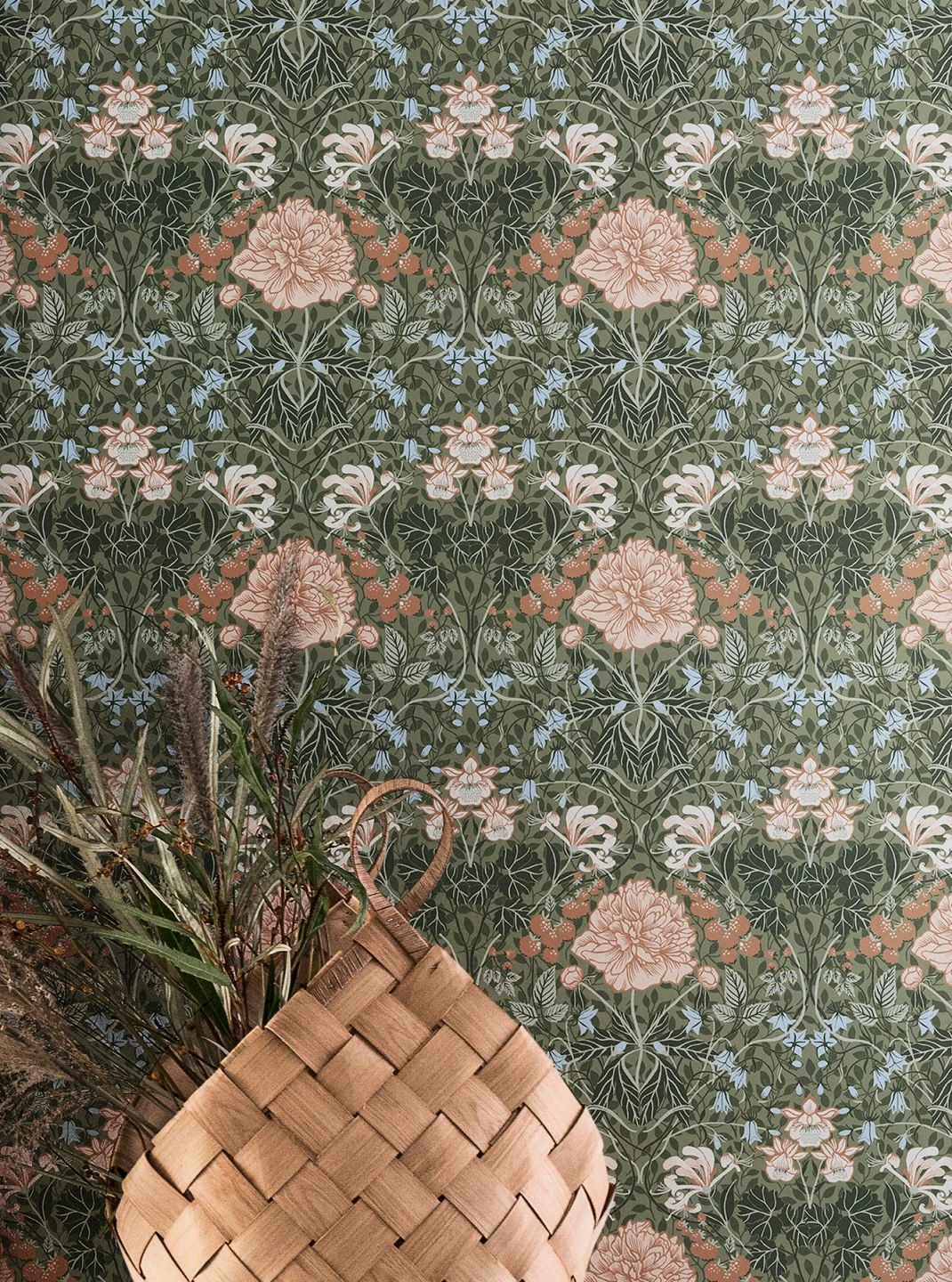 Eine Hommage an Renaissance und Mittelalter, an zarte Bande und tiefe Sehnsucht ist Klassiktapete Lovisa in der eleganten wie raffinierten Farbstellung aus Hellolivgrün, Grauweiss, Kupferbraun, Tannengrün und Weissgrün. Nahezu jeder Raum erhält durch das erlesene Ornamentmuster eine unwiderstehliche Anziehungskraft.