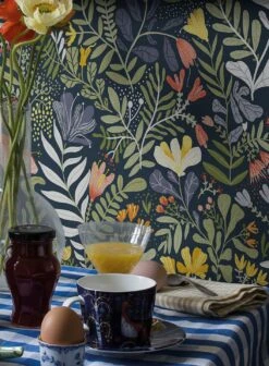 Ein Blumenmeer in den verschiedensten Formen bedeckt diese Vliestapete über und über. Auf dem ruhigen, graublauen Untergrund scheinen die kräftig roten, gelben, blauen und weißen Blüten wie von selbst zu leuchten. Die Farben bringen die ganze Lebenskraft des Sommers in Ihr Zimmer und erlauben vielfältige Kombinationsmöglichkeiten.