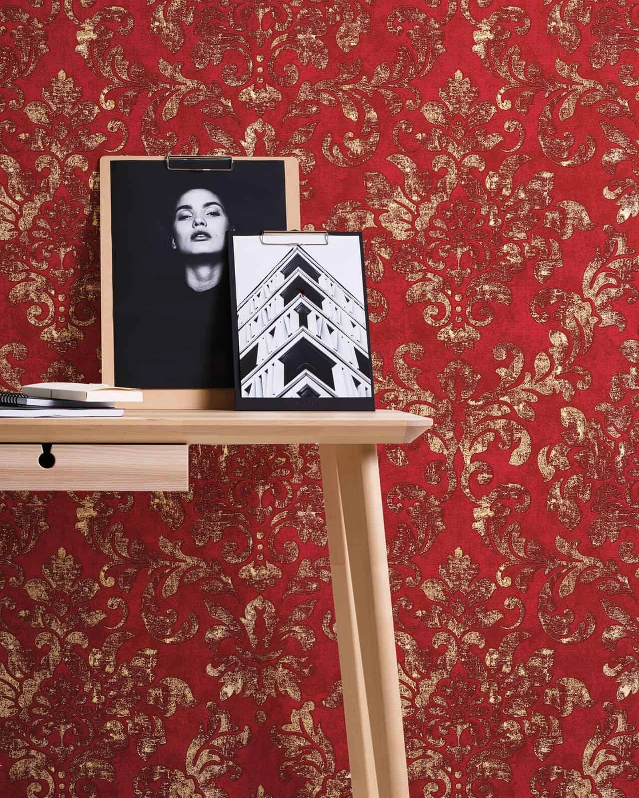 Tapete Vlies „Neue Bude“ Barock-Design rot braun gold 37413-1 | 374131 von livingwalls