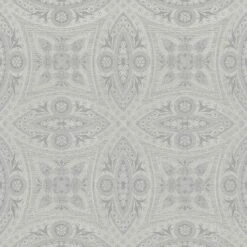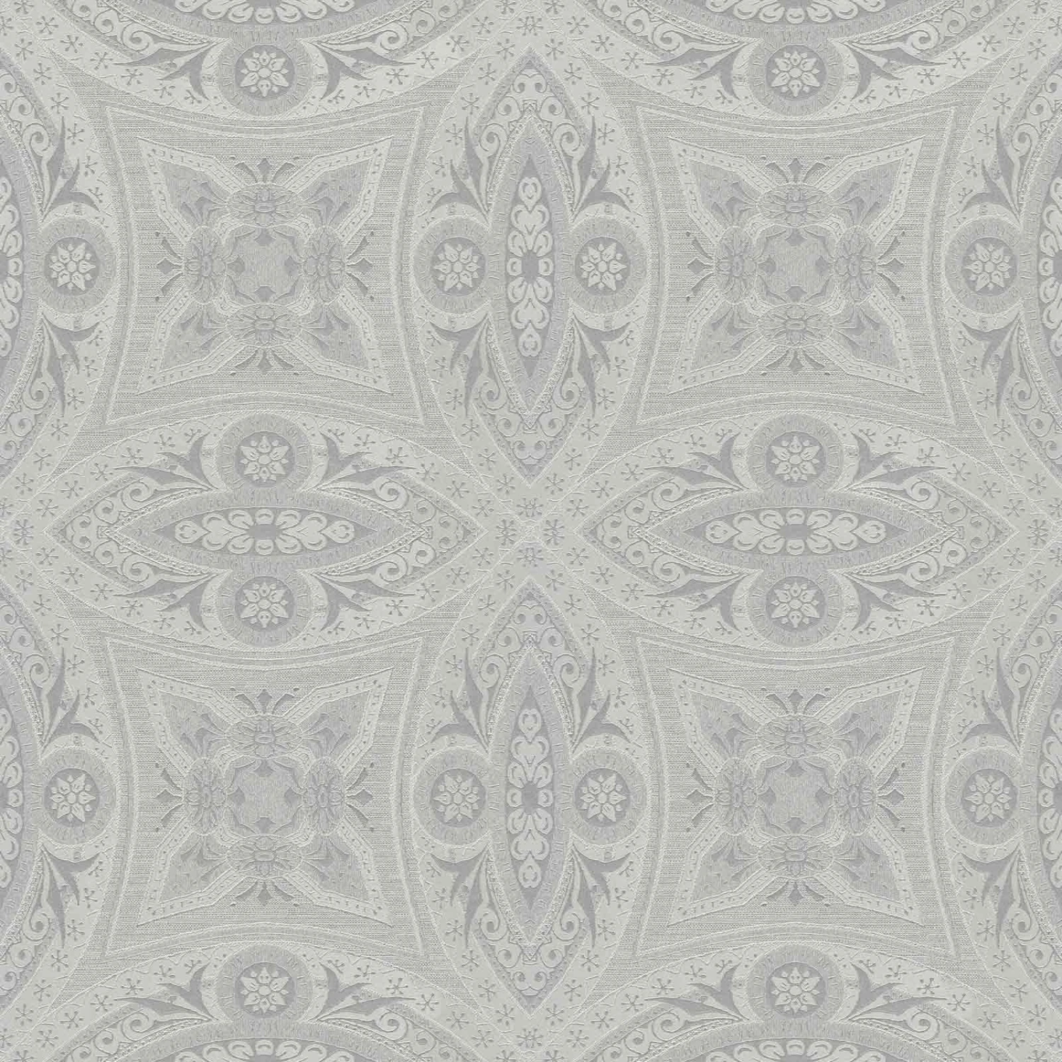 - Stilwelten: üppige Kreis-Ornamente mit Stuck-Optik auf einer feinen Textilstruktur, silber mit Glanz-Effekt