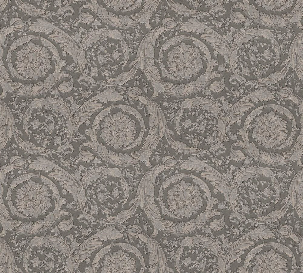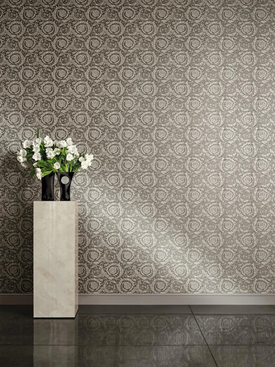 Die Einrichtungsmarke Versace Home steht für exklusives und hochwertiges Interiordesign. Dabei erfindet sich die Designermarke mit ihren glamourösen Kreationen immer wieder neu und setzt damit unangefochtene Maßstäbe im Einrichtungsbereich. Mit der dritten Auflage der erfolgreichen Versace Home Tapetenkollektion setzt die Luxusmarke erneut ausdrucksstarke Akzente im Wohnbereich. Inspiriert von Prunk und Eleganz sowie der griechischen Mythologie verzaubert Sie die Versace Vliestapete 93583-6, aus der Themenreihe Barocco Flowers, mit einem antiken Ambiente. Dieses Ambiente wird durch das kräftige Kolorit aus grau und silber-grau Glanz sowie der aufregenden Prägestruktur stilvoll in Szene gesetzt. Die Kombination aus Farbe und Struktur führt letztendlich dazu, dass das Rankenmuster mit Blumenmotiven zum Hauptaugenmerk Ihrer Wandgestaltung wird.