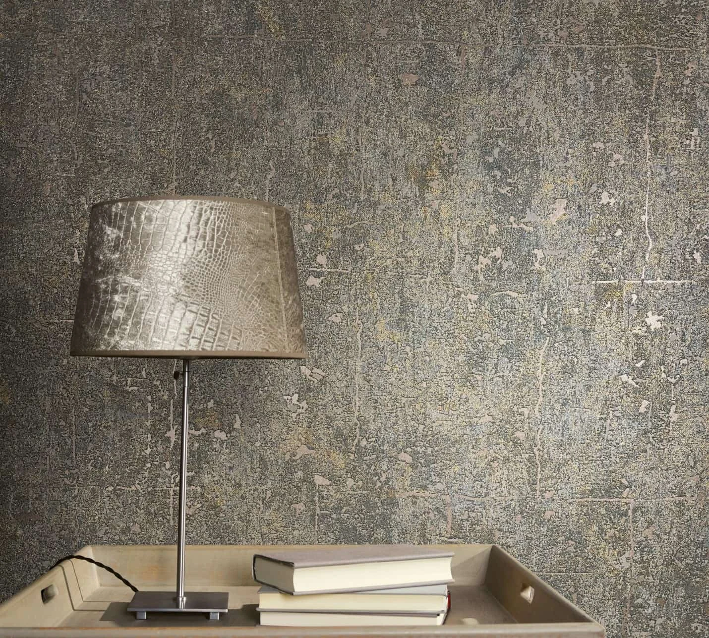 Vliestapete 82266 aus der Kollektion Ivy von Novamur mit Betonoptik mit Struktur in dunkelgrau mit Glitzer und metallic Effekt